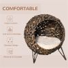 Features:- Rattan wicker brings a classic style to your home- Tripod base of the cat hyacinth bed is constructed with metal wire for balance- A soft cushion is included with the animal basket for a comfy bed that will delight your furry friend- Elevated condo pod design ensures air-flow and more play options- Enclosed structure offers your cat slumber and play options- The cat bed with cushion is meant for cats 11 pounds or lessSpecification:- Rattan Cat House Color: Brown- Material: Water Hyacinth, Metal Wire, Polyester, PP Cotton- Overall Dimension: Φ20.5" x 22.75"H- Door Dimension: Φ15"- Cushion Dimension: Φ19.75"- Weight Capacity: 22 lbs- Recommended for cats less than 11 lbs Package Includes:- 1 x Cat House- 1 x Cushion (not washable)